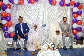 جشن ازدواج دو زوج سیل زده خوزستانی با همکاری شهرداری اهواز، هلال احمر و سازمان بهزیستی در سالن ورزشی خانه والیبال اهواز -جایی که سیل زدگان به طور موقتی اسکان داده شده اند- برگزار شد.