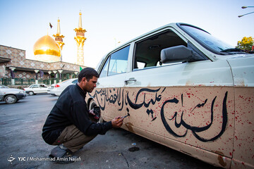 علاوه بر ماشیننویسی نقاشی روی ماشینها مدتی است که در این ایام باب شده و جوانان با نقاشی خودرو، ارادت خود را به امام حسین(ع) نشان میدهند.
