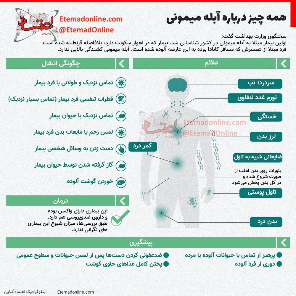 سخنگوی وزارت بهداشت گفت: اولین بیمار مبتلا به آبله میمونی در کشور شناسایی شد. بیمار که در اهواز سکونت دارد، بلافاصله قرنطینه شده است. فرد مبتلا از همسرش که مسافر کانادا بوده به این عارضه آلوده شده است. آبله میمونی کشندگی بالایی ندارد. منبع: اعتمادآنلاین