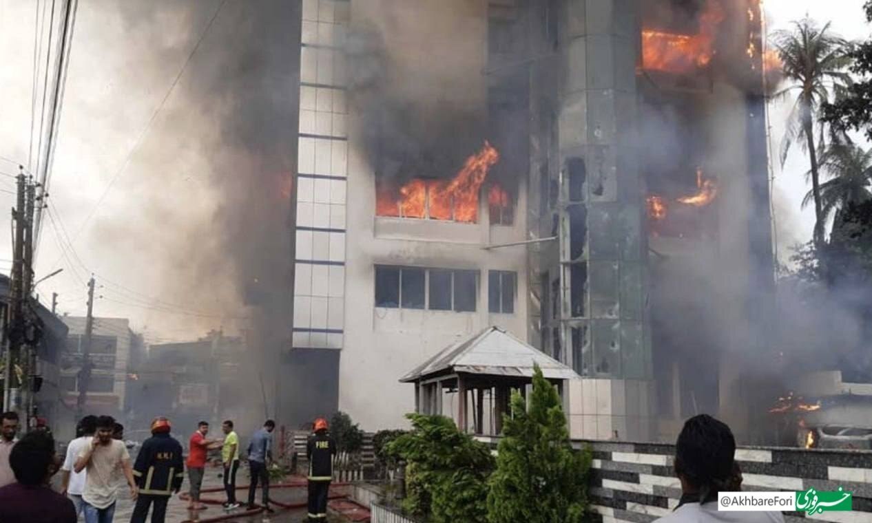 حمله معترضان در بنگلادش به هتل پنج ستاره الزبیر در پایتخت این کشور منجر به آتش کشیدن این هتل شد که تاکنون ۱۸ کشته و ۵۰ زخمی برجای گذاشته است. منبع: خبرفوری